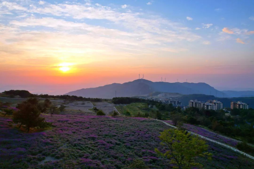 百里荒云中花海,位于海拔1000米的百里荒康养小镇,规划面积400亩,以薰衣草、马鞭草、鼠尾草等紫色系花种为主,与《山楂树之恋》中那颗象征纯美爱情的山楂树遥相呼应,让有情人打卡紫色花海,追寻纯美爱情,感受浪漫生活。